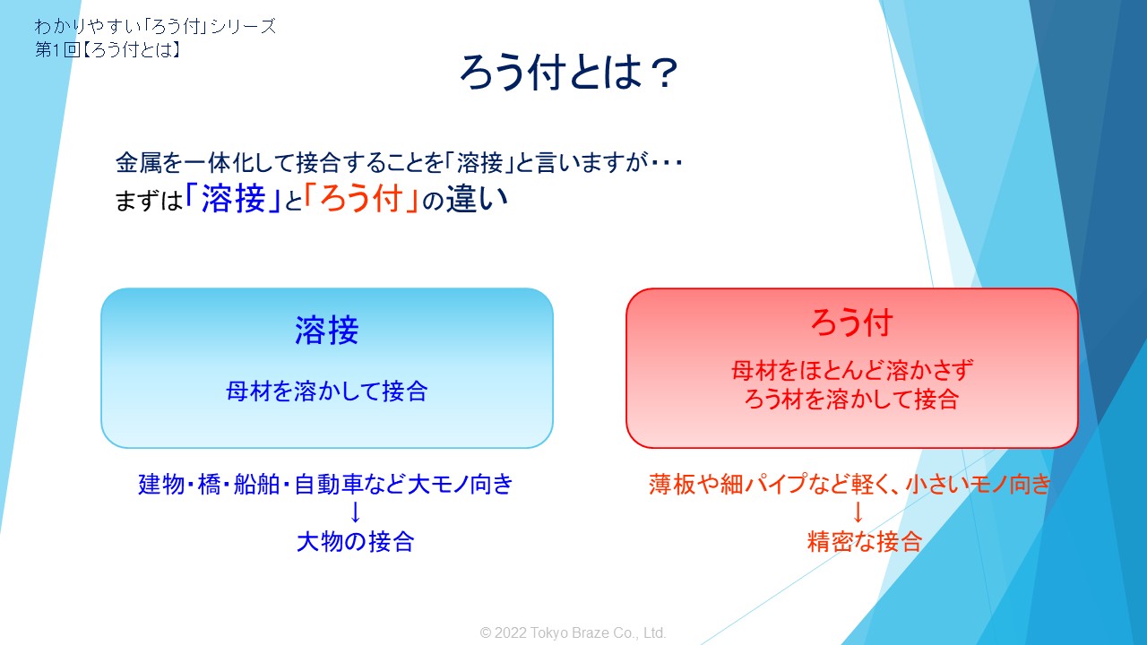 ロウ付と溶接の違い、ロウ付とハンダ付の違い、