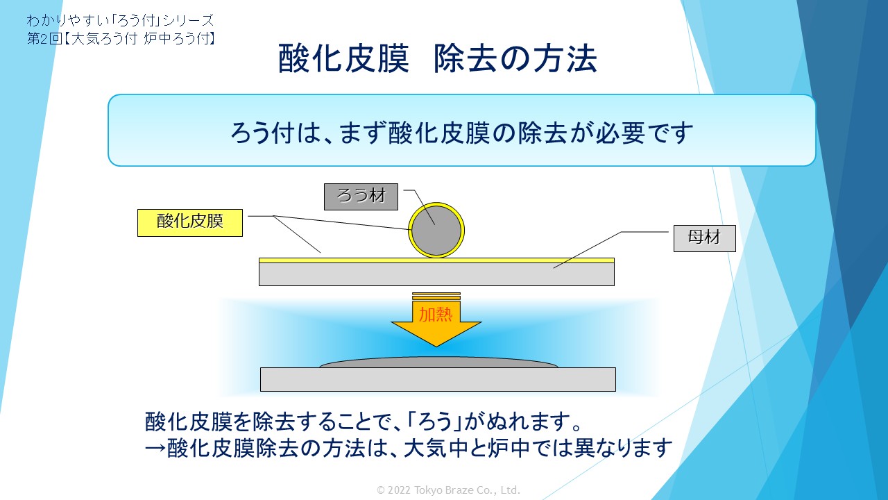 炉中ロウ付では空気を遮断して除去します。