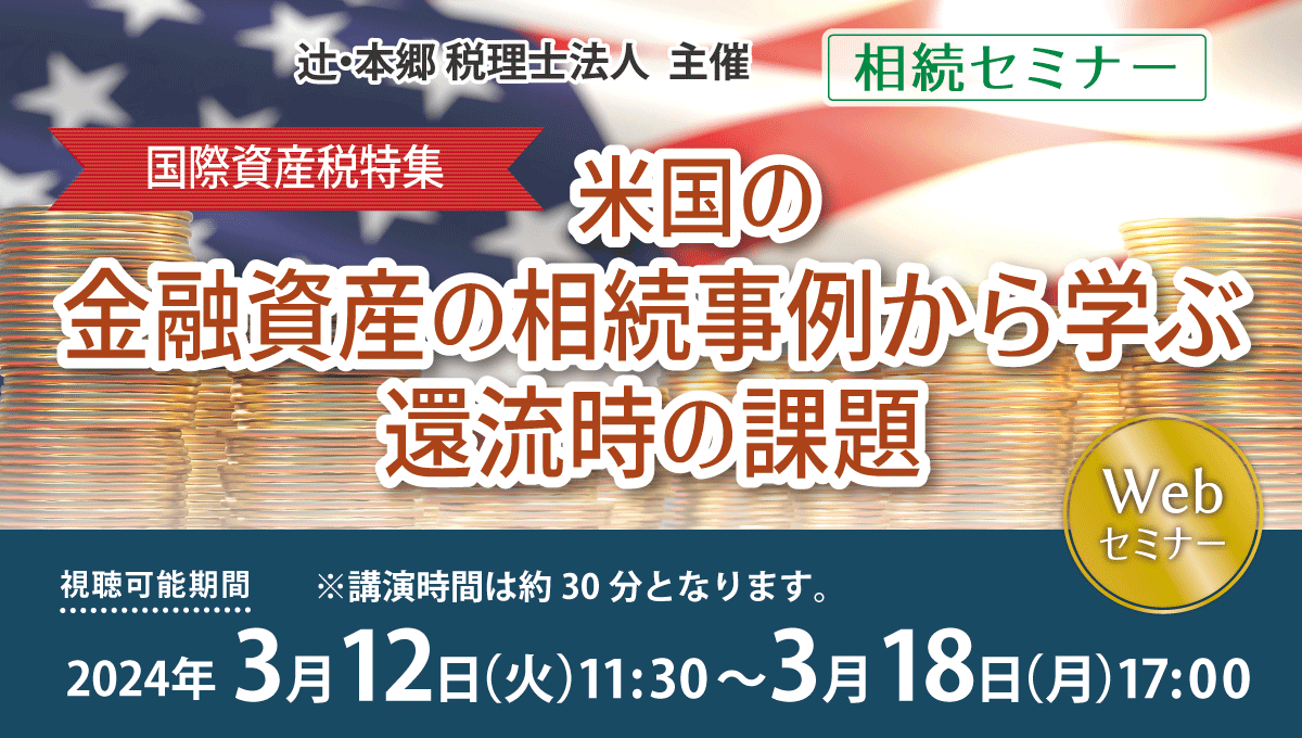 講師 | 平尾 嘉三 (辻・本郷 税理士法人 プライベートウェルスマネジメント部 マネージャー/税理士) 池上 千祥 (辻・本郷 税理士法人 府中事務所 マネージャー) |