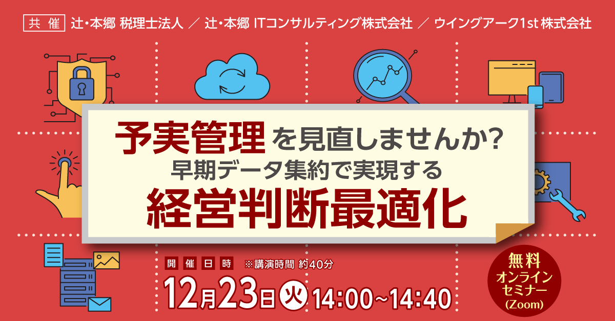 | 主催 | 辻・本郷 税理士法人/辻・本郷 ITコンサルティング株式会社/ウイングアーク1st株式会社(共催) |