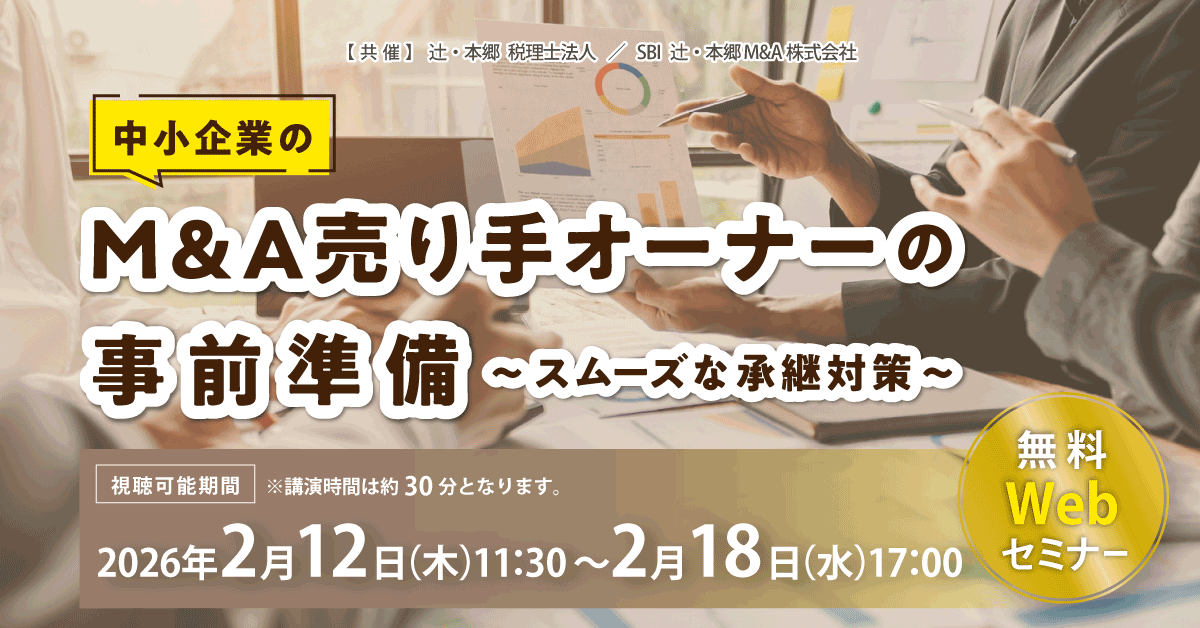 | 主催 | 辻・本郷 税理士法人/SBI 辻・本郷M&A株式会社(共催) |