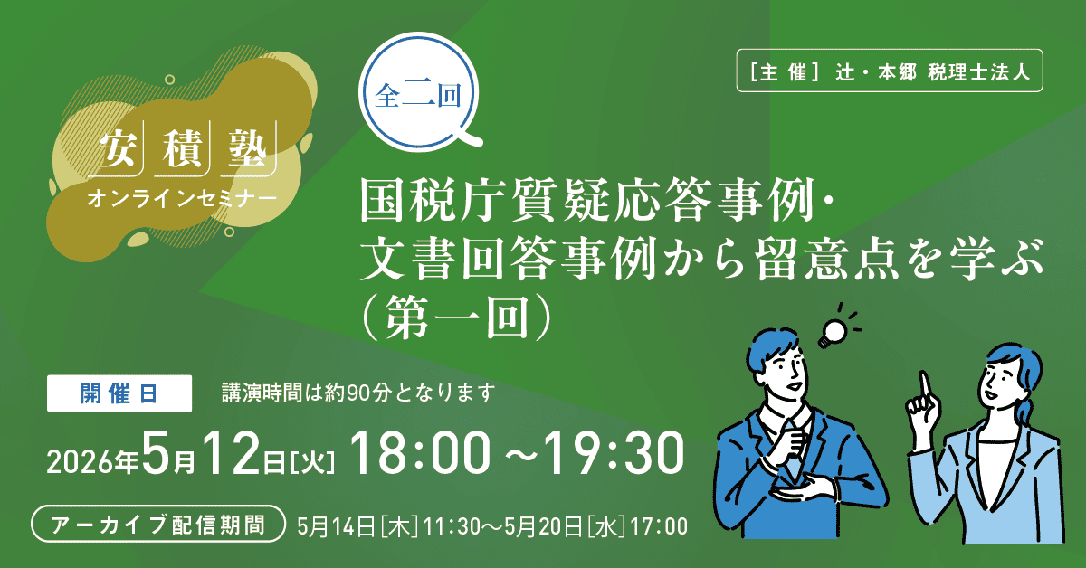 | プログラム | 講演時間【約90分】 ◆一の申請に対し複数回支給される地方公共団体からの給付金の所得区分 ◆被相続人居住用家屋と被相続人居住用家屋の敷地等をそれぞれ別の相続等により取得した場合 ◆交際費等の範囲(贈答に係る送料) など 国税庁の質疑応答事例は、納税者からの照会に対して国税庁が回答した事例等のうち、他の方々の参考となるものが掲載されています。 第一回となる本セミナーでは、令和7年11月に更新された最新の質疑応答事例の中から、所得税・法人税・資産税の注目事例をピックアップし、現場で迷いやすいポイントを解説します。更新内容を確認したい方にお勧めのセミナーです。 ※本セミナーは全二回を予定しており、第二回は文書回答事例の解説を予定しております。 |