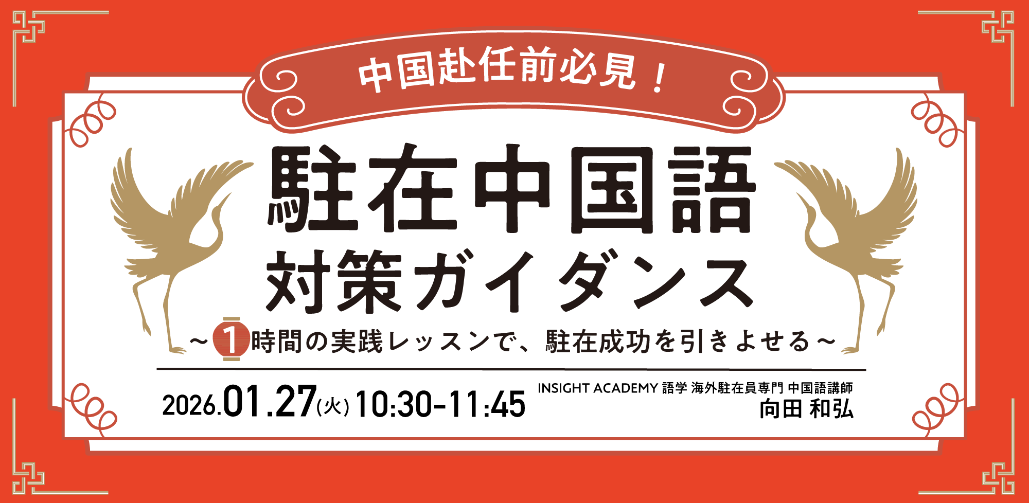 26/1/27【中国赴任前必見!】”駐在中国語” 対策ガイダンス~1時間の実践レッスンで、駐在成功を引きよせる~