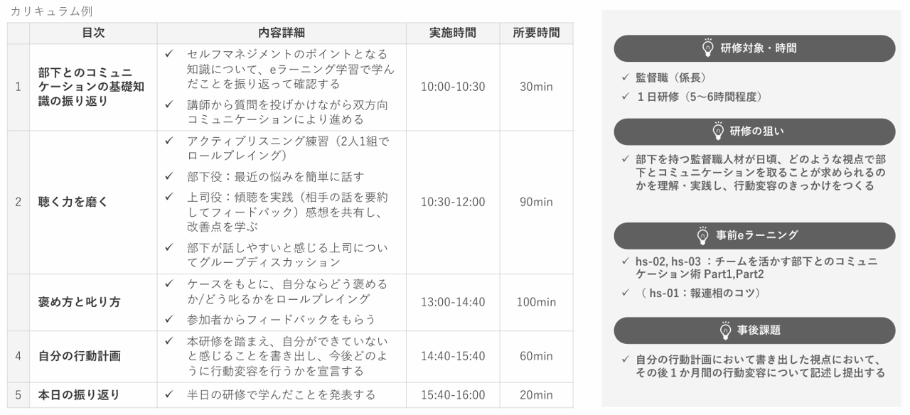 受講対象者 ✔部下との接し方が自己流でうまくいかないと感じるリーダーの方 ✔部下が育たないとお悩み管理職の方 |