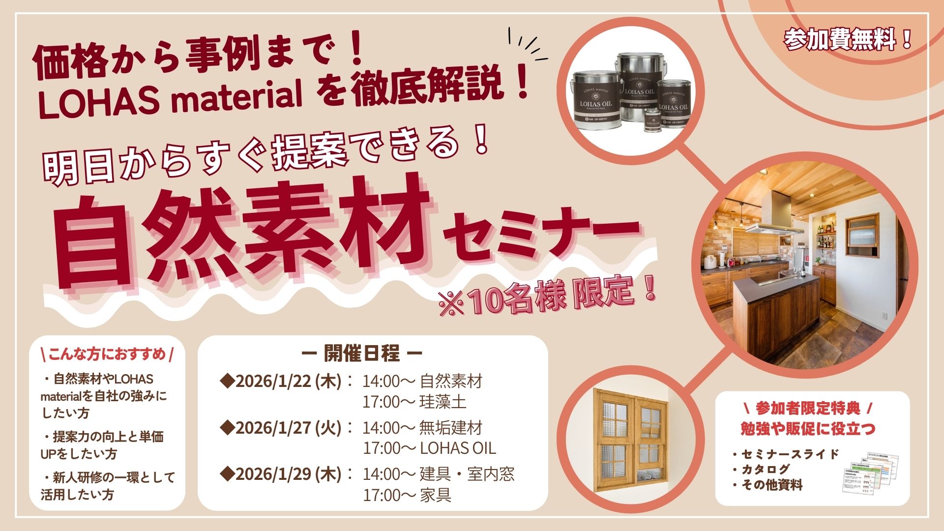 1月 22日(木)14:00~15:00 自然素材 セミナー