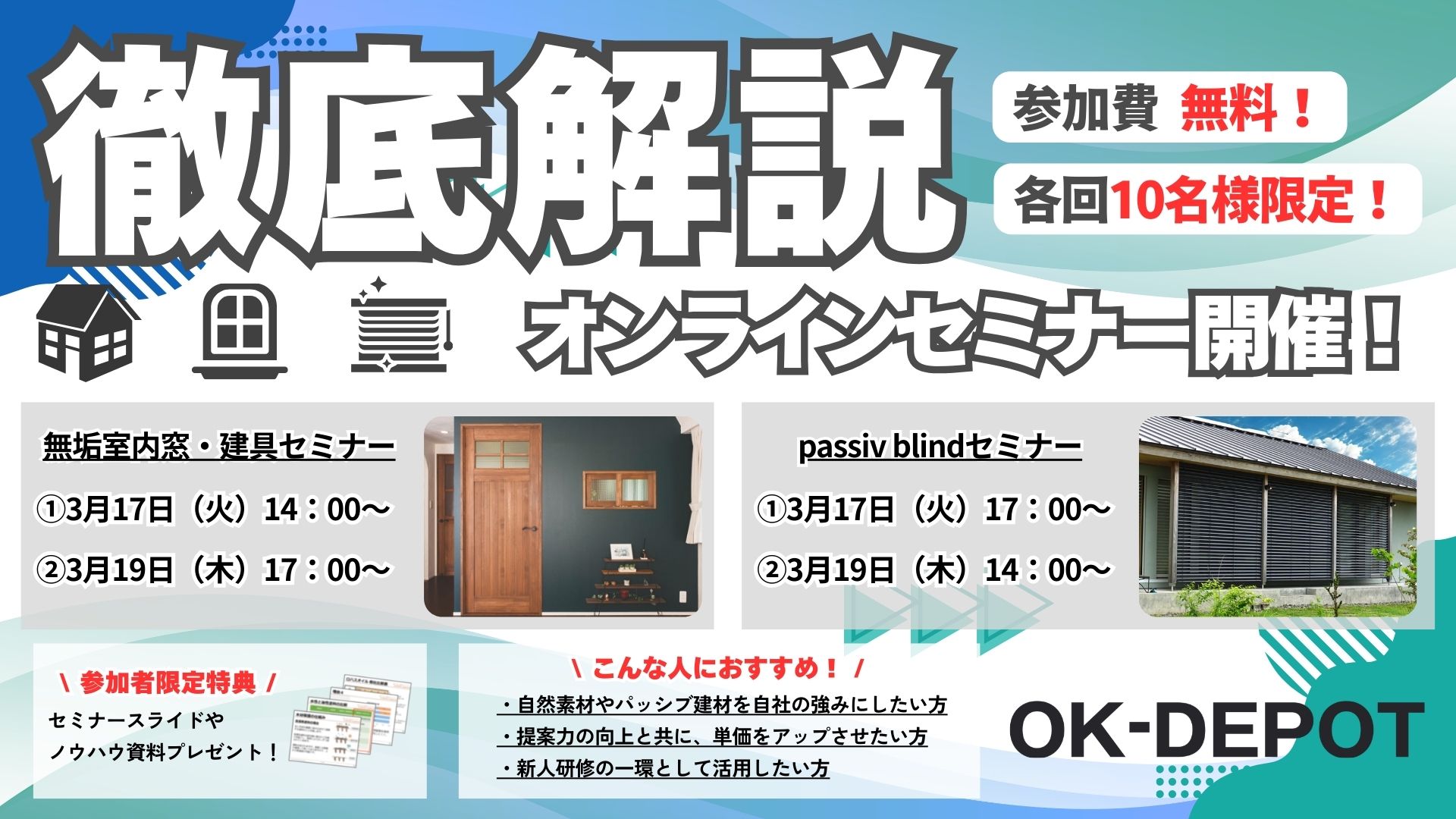3月 19日(木)17:00~18:00 無垢室内窓・室内ドア セミナー