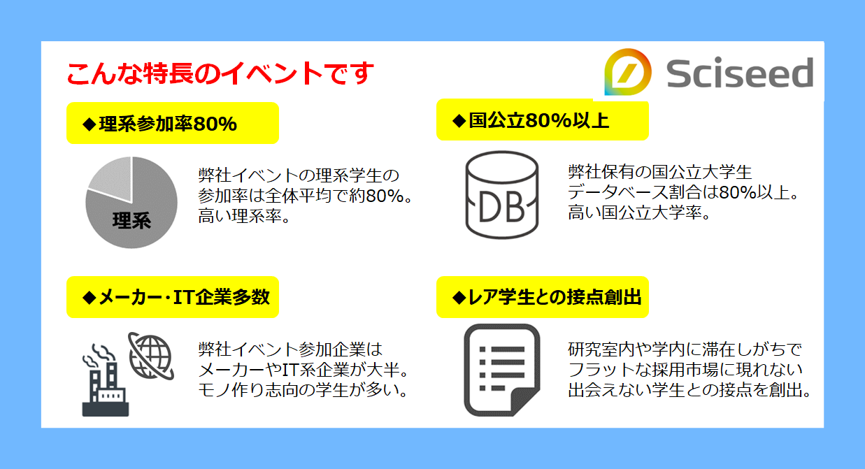 サイシードは『理系』・『国立』・『上位校』などをキーワードとして、