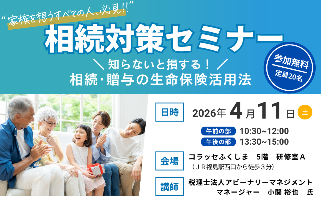 相続は誰にでも訪れる大切なライフイベントです。 本セミナーでは、相続の基本的な仕組みから、遺留分の考え方、エンディングノートの活用方法、生命保険を活用した相続税対策まで、幅広いテーマをわかりやすく解説します。